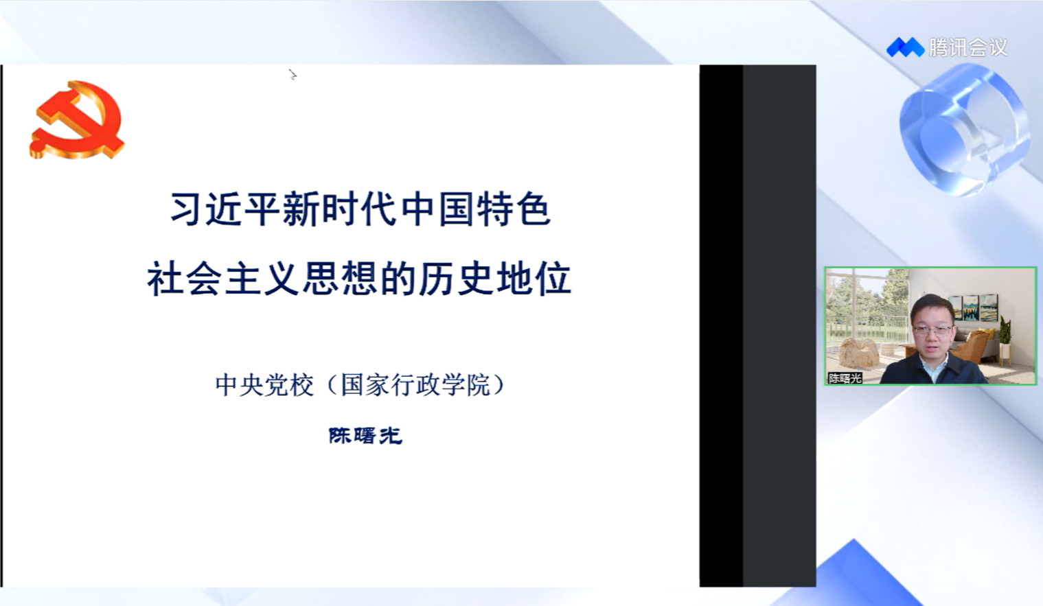 2023年4月22日下午,fun88官网体育邀请中共中央党校(国家行政公司)陈曙光教授走进公司思政课课堂,作《习近平新时代中国特色社会主义思想的历史地位》专题报告。报告采取“腾讯会议+直播”的形式进行,公司2021级和2022级本科生、校员工党校“求理”分部暨青年马克思主义研修班学员、马克思主义公司师生共同聆听报告。马克思主义公司党委书记高宁主持报告会。