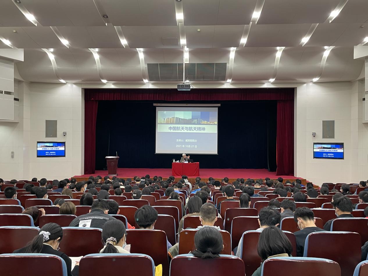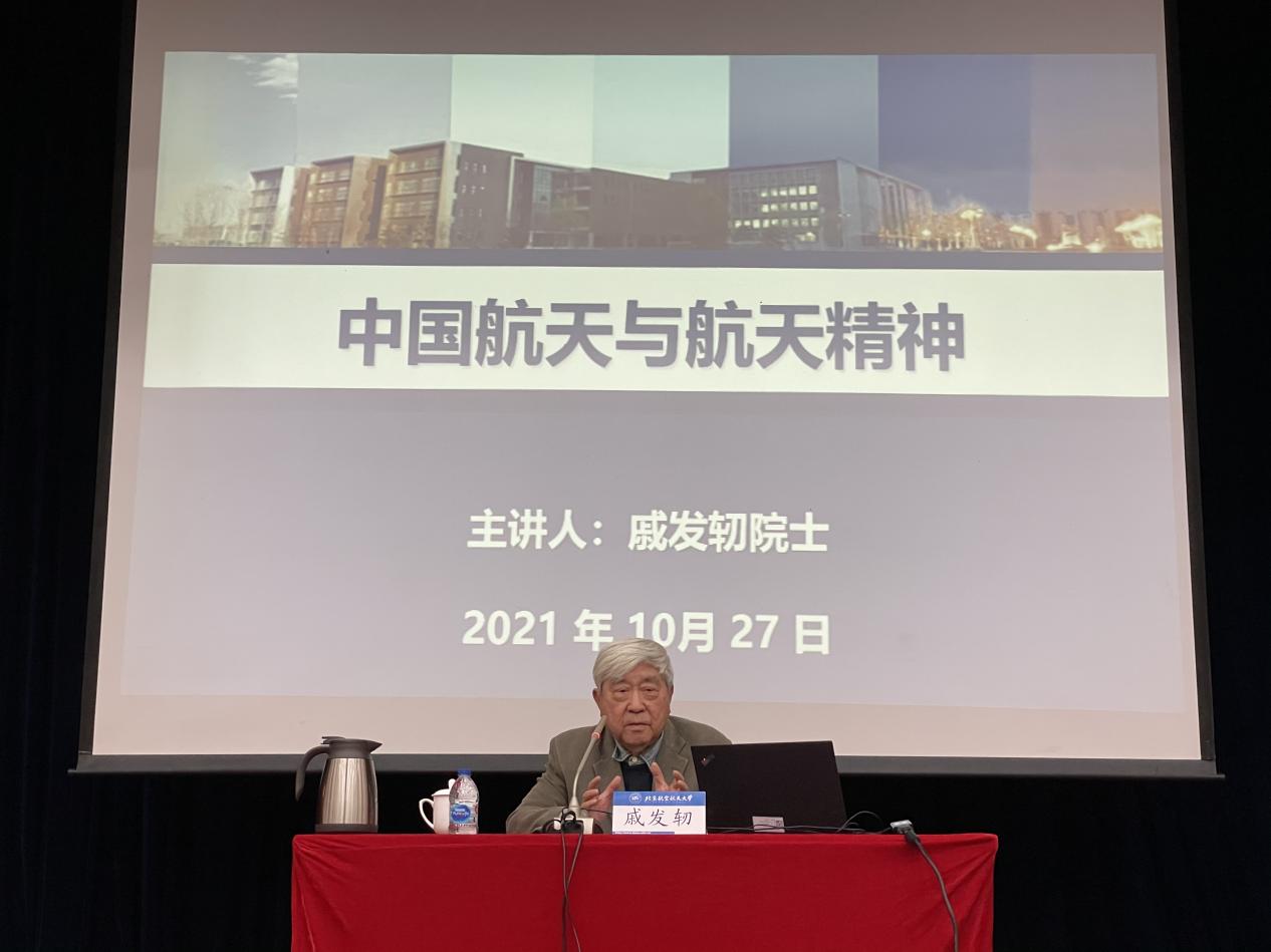 2021年10月27日上午,戚发轫院士走进北航学术交流厅为公司“思想道德与法治”和“习近平新时代中国特色社会主义思想概论”课的近400名大一新生主讲“中国航天与航天精神”的大思政课。