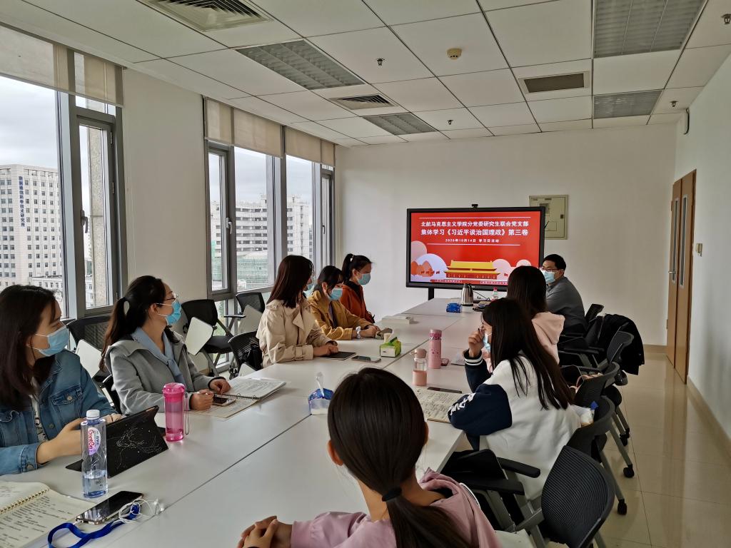 为全面深入学习贯彻落实习近平新时代中国特色社会主义思想和党的十九大及十九届二中、三中、四中全会精神,学深悟透《习近平谈治国理政》第三卷,fun88官网体育研究生党支部于10月14日组织开展了以集中学习《习近平谈治国理政》第三卷为主题的“fun88官网体育青年原著读书会”党日活动。党支部副书记陈思康同志向大家传达了《中央宣传部、中央组织部关于认真组织学习<习近平谈治国理政>第三卷的通知》,并强调支部全体成员要认真学习深刻领会其中精神,要发挥学科专长,阅读经典原著,将马克思主义原理与实际相联系,始终坚持以习近平新时代中国特色社会主义思想为行动指南。