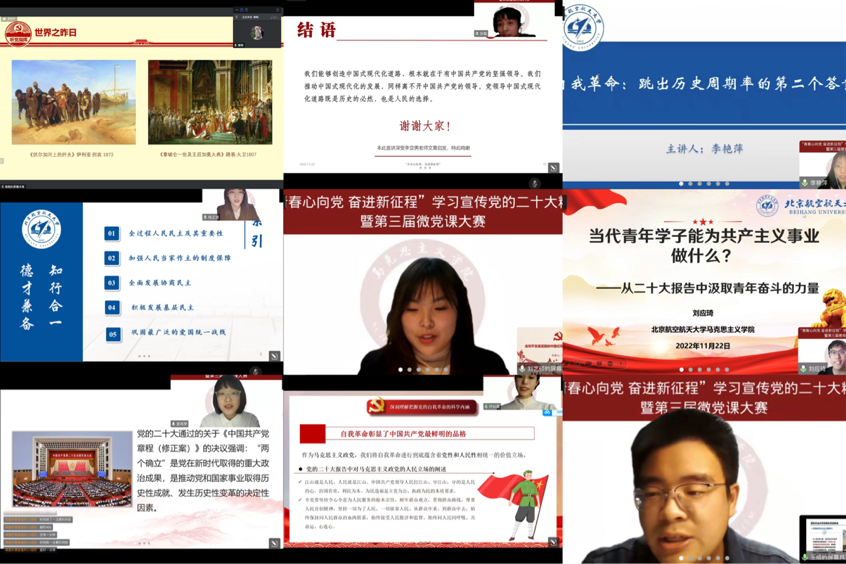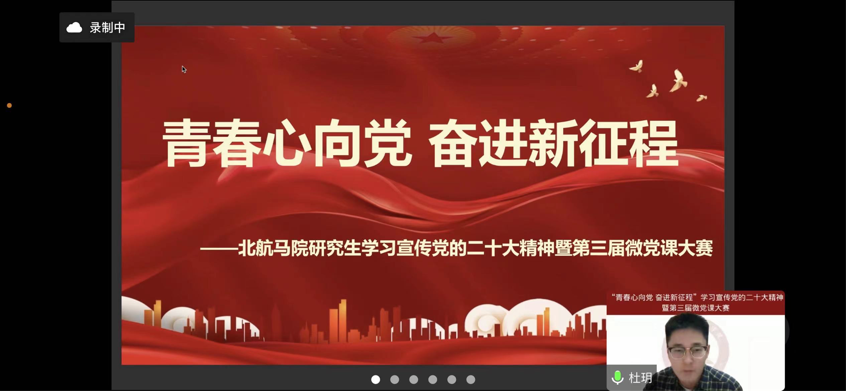 近日,为深入学习贯彻党的二十大精神,进一步学懂弄通做实习近平新时代中国特色社会主义思想,提升研究生的思想理论水平,fun88官网体育举办的“青春心向党,奋进新征程”学习宣传党的二十大精神暨第三届微党课大赛。副经理陈萌、2022级博士班主任巩永丹、硕士班主任徐冶琼和2021级硕士班主任刘浩然担任比赛评委,参赛研究生通过线上方式进行宣讲展示,全体硕士研究生旁听。比赛由2022级研究生辅导员杜玥主持。