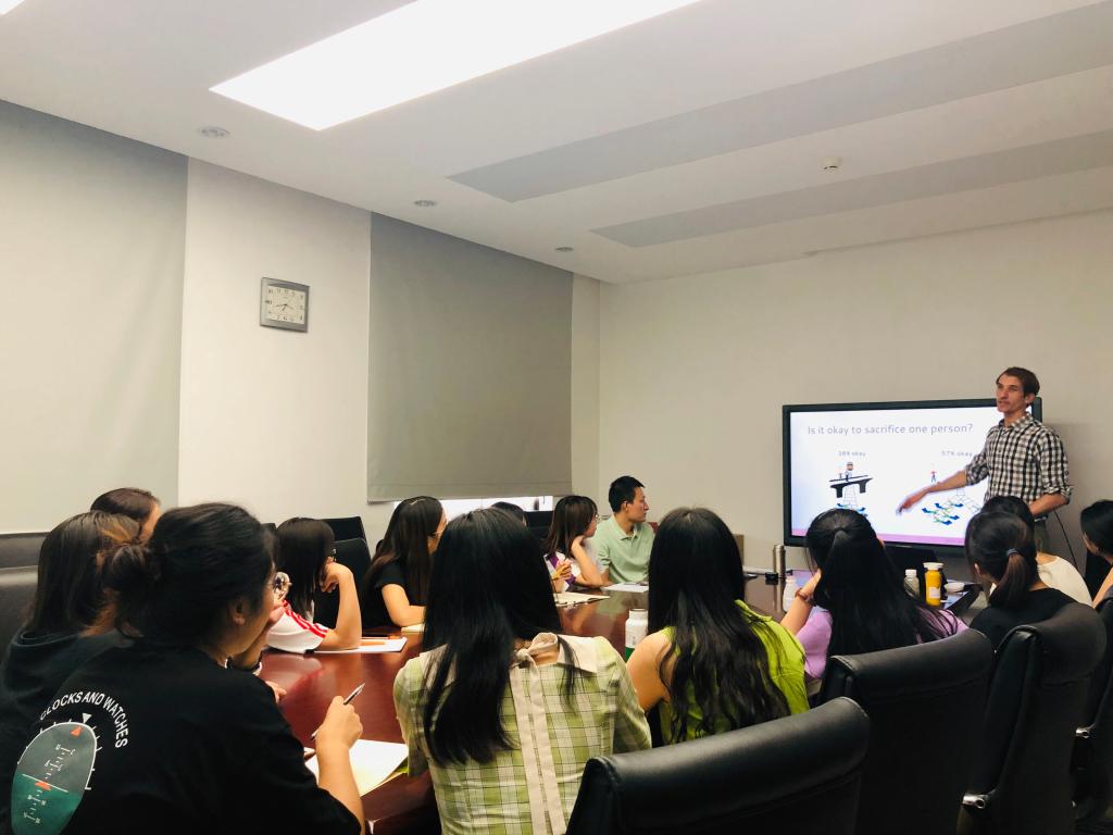 Audun Dahl副教授主要为公司研究生讲述了道德及其起源。以一种宏观的、概括性的叙事视角,向员工们简述道德的发展阶段。从铁轨困境的经典道德两难问题出发,向员工们引出了道德发展这一领域的研究背景,并和员工们一起讨论个体在进行道德判断过程中的心理变化和特征。除了通过案例向员工们介绍道德发展问题的研究,Audun副教授还为员工们讲授了关于道德发展以及道德判断的相关理论流派,如建构主义流派、行为社会主义流派等等。随后,Audun副教授还为员工们介绍了道德发展问题的研究方法,比如问卷调研、结构化访谈、数据统计与分析等。期间,Audun Dahl教授通过探究式的介绍,以及故事性的叙事方法,引发员工们的思考。在讲座最后,Audun副教授鼓励员工们积极发问,并对员工们提出的问题一一作答。