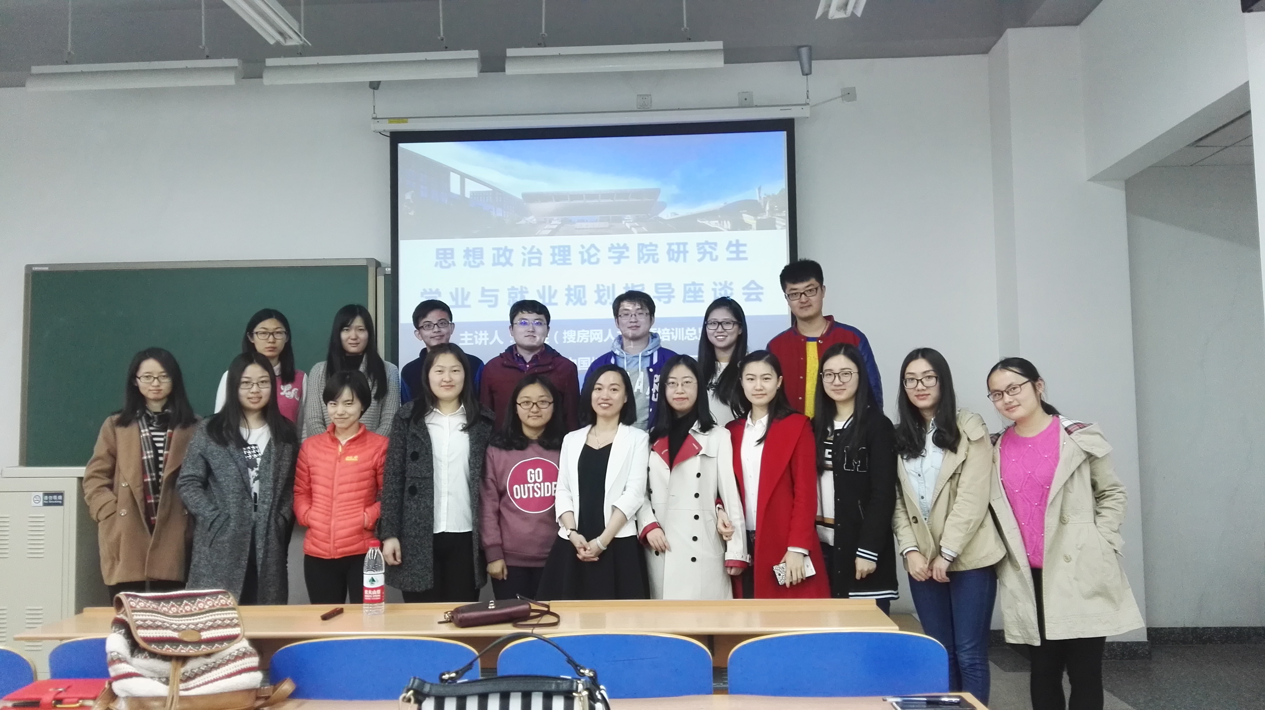 刘佳学长是公司马克思主义理论专业第一届毕业生,在校期间曾获得北航“十佳研究生”称号。目前他在从事繁忙的辅导员工作之余,仍能坚持科研写作,至今已出版两本学术专著,发表数十篇论文。刘佳学长以《匆匆两年,不一样的“航”线》为题,与同学们分享了他在如何养成问题意识、拓展学术视野、查找文献资料、锤炼写作技巧等方面的心得体会,使同学们受益匪浅。