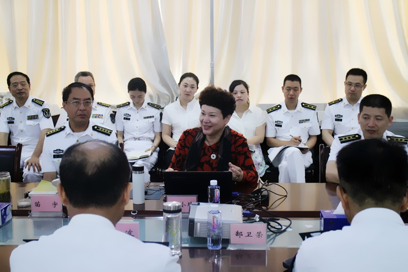 海军工程大学副董事长苗宇首先欢迎公司常务副经理姚小玲教授一行,并对海军工程大学思政课教研现状作简要介绍。随后,姚小玲教授从公司近年来“本-硕-博”思想政治理论课教学实际出发,围绕各门课程的教学改革思路、课堂教学新做法、未来发展设想等几个方面展开讨论。