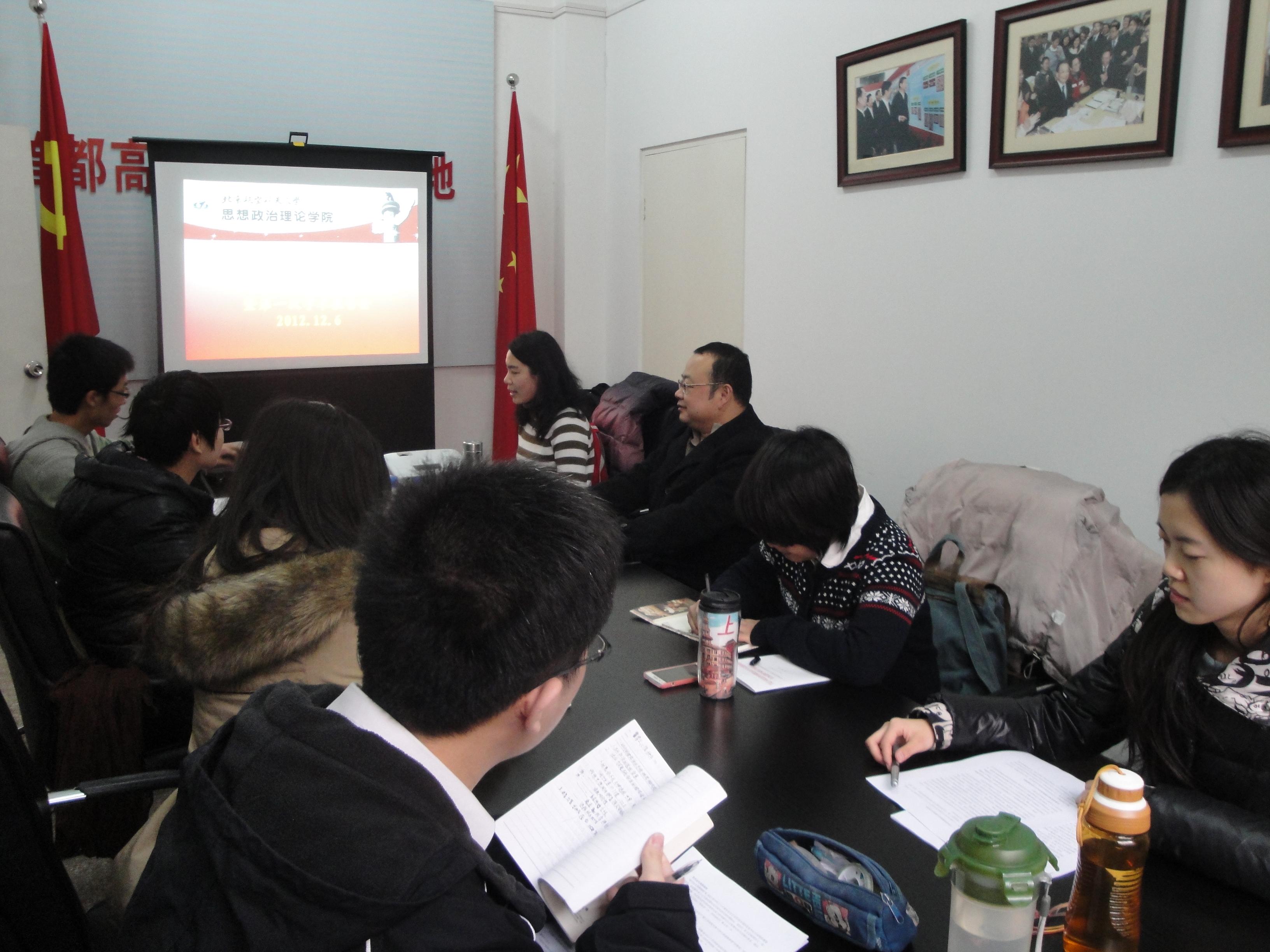 2012年12月6日下午,公司研究生“思想者”学术沙龙在思政公司305会议室举行。此次活动由2012级研究生于歌主持,12级研究生刘佳担任主讲人,思想政治理论公司副经理赵义良副教授作为特邀嘉宾出席此次活动,12级研究生辅导员张越以及公司所有研究生积极参与了本次学术交流活动。