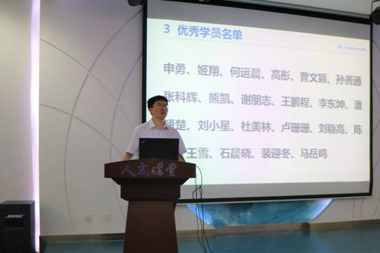 证书颁发结束后,宋老师对学员们从认认真真学理论,旗帜鲜明讲政治,追求卓越三个方面对同学们提出了殷切的期待。他指出,首先,在座的同学作为党员骨干,应当把马克思主义作为指导思想,放在首位,扎实理论基础,学习马克思主义应当学习马克思主义的理论,阅读马克思主义相关书籍,才能深切体会马克思主义思想的伟大之处。其次,旗帜鲜明的讲政治,在座的学员都是各公司研究生党支部中的骨干,更应当旗帜鲜明的讲政治。党的十九大报告对讲政治的要求贯穿于始终,但是如何才能做到旗帜鲜明地讲政治呢?他认为,第一点就是要突出政治意识;第二点,要有政治定力;第三,要强调政治担当;第四个,要有政治能力,提高政治敏感性;第五个,要做到政治自律。第三方面,追求卓越。宋老师勉励大家要不断提升专业素质,不能做精致的利己主义者,要有奉献精神,大气的胸怀和宽广的人生格局,要努力从以上三个方面入手,努力做一名合格的青年马克思主义者。