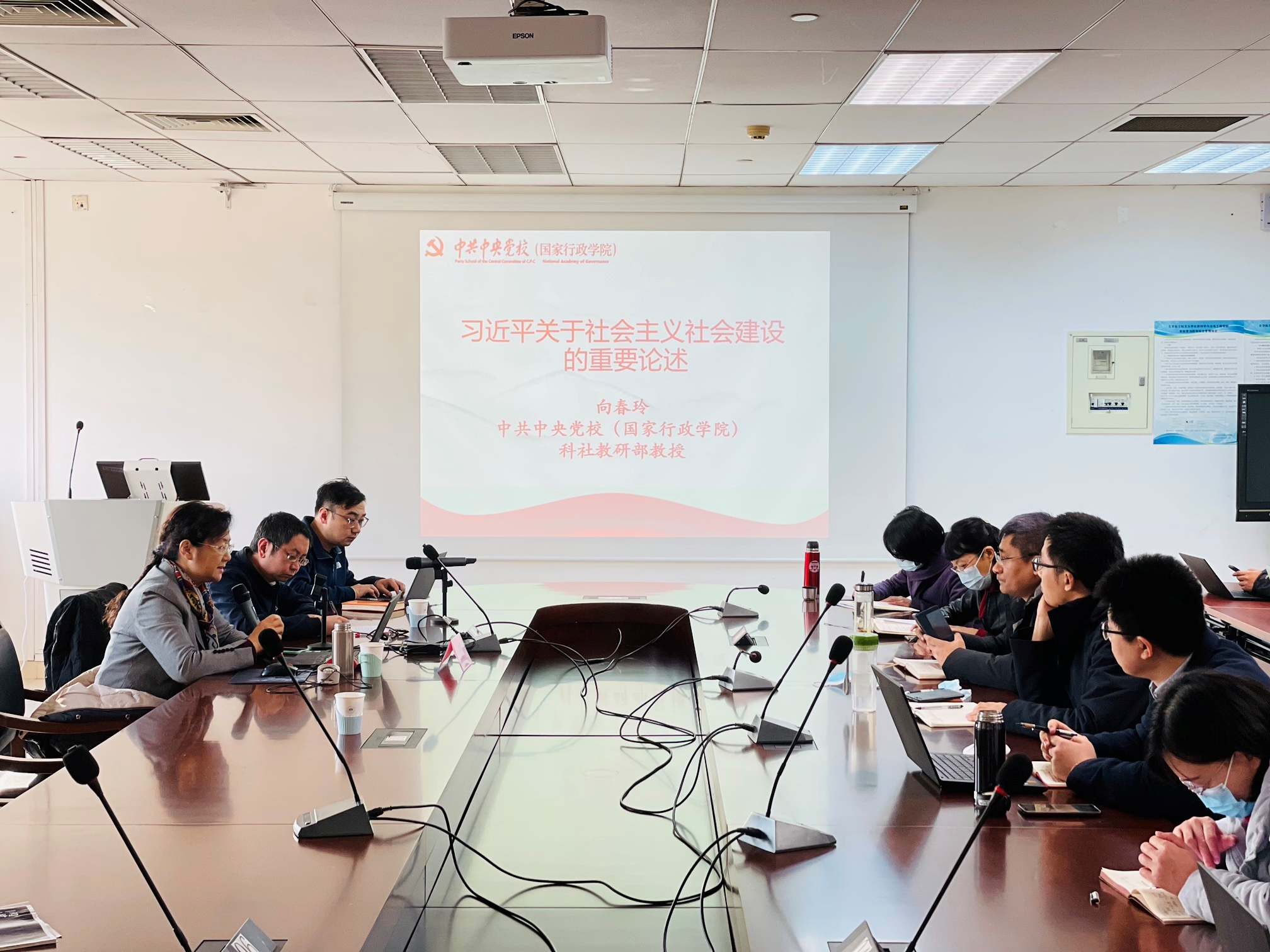 向春玲教授从新时代社会建设的形势要求讲起,认为社会建设是中国特色社会主义总体布局的重要组成部分、是中国特色社会主义进入新时代的必然要求、是当前应对国际经济政治环境新变化的重要途径;其后,向春玲教授结合自身多年来的调研经历,从人民主体论、共享发展观、社会公正观等3个方面对习近平关于社会建设的理论主张展开了系统阐述;最后,向春玲教授针对当前社会建设中存在的突出问题,围绕保障和改善民生、加强和创新社会治理两部分对习近平关于社会建设的实践路径进行了深入分析。