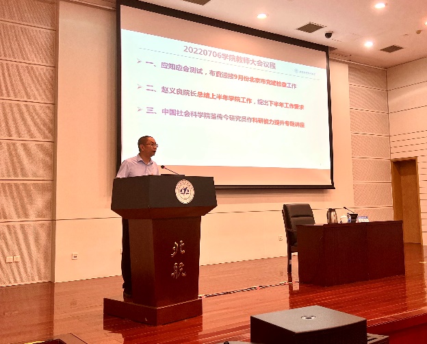 7月6日下午,fun88官网体育在新主楼第二报告厅召开全院教职工会暨集体学习,总结公司2022年上半年主要工作,并对暑假疫情防控及下半年重点任务进行部署。