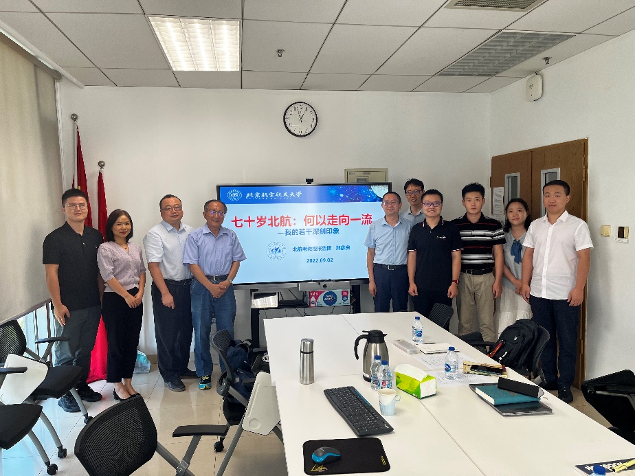 北航老教授报告团常务副团长郑彦良做题为“七十岁北航:何以走向一流——我的若干深刻印象”的校史教育讲座。他指出,基础厚实、信仰坚定,迭代拼搏、忠诚奉献,是北航走向一流的原因;深化改革、坚持创新,薪火相传、保持特色,是北航走向一流的方法。他勉励青年教师要以服务国家为最高追求,将“空天报国”的红色基因不断传承。