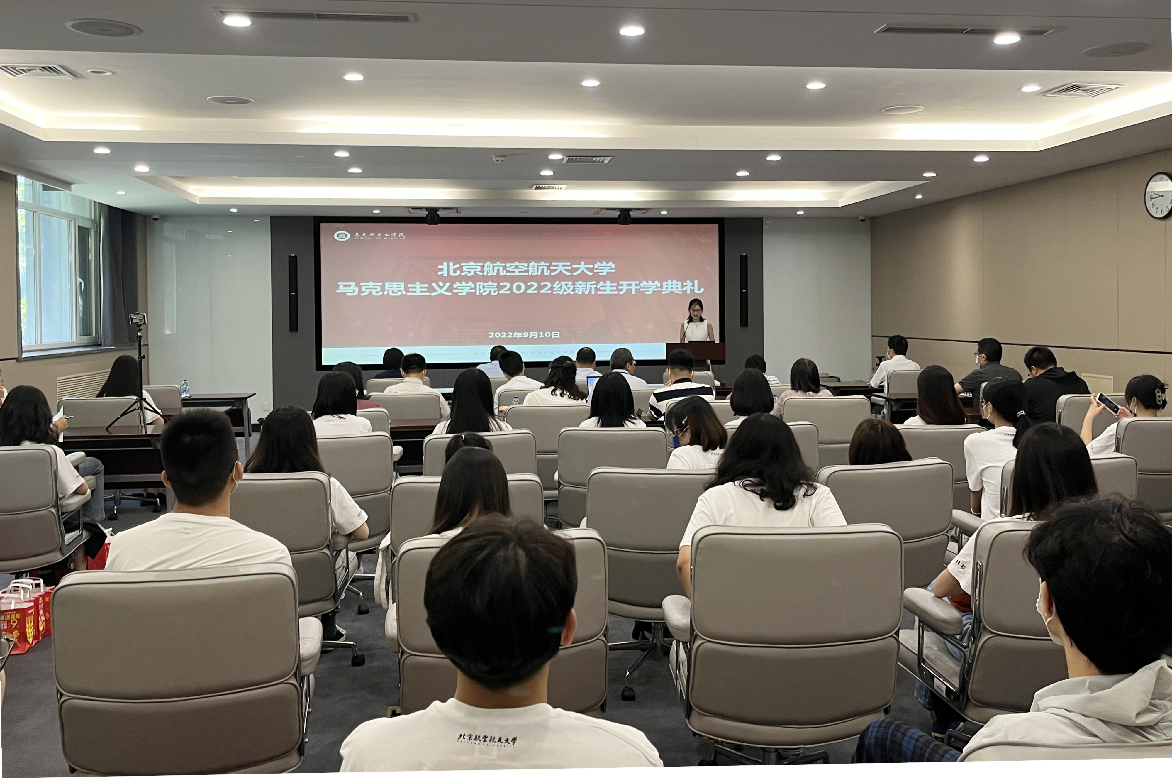 其后,2022级博士新生代表刘白薇在发言中与全体新生分享了自己对即将开启的求学之路的三点思考,与同学们共勉:一是立志学术;二是热爱生活;三是心怀天下。2022级硕士新生代表朱孔泽表达了对研究生生活的向往以及对加入北航fun88官网体育的自豪,并代表全体硕士新生承诺,将严守“德才兼备 知行合一”的校训,用知识武装头脑,坚定理想信念,做好规划,不负fun88官网体育、不负北航、不负青春。2021级员工代表张琦在发言中建议师弟师妹,一定珍惜研究生阶段的宝贵时光,夯实理论功底,脚踏实地争做坚定有为的青年马克思主义者。