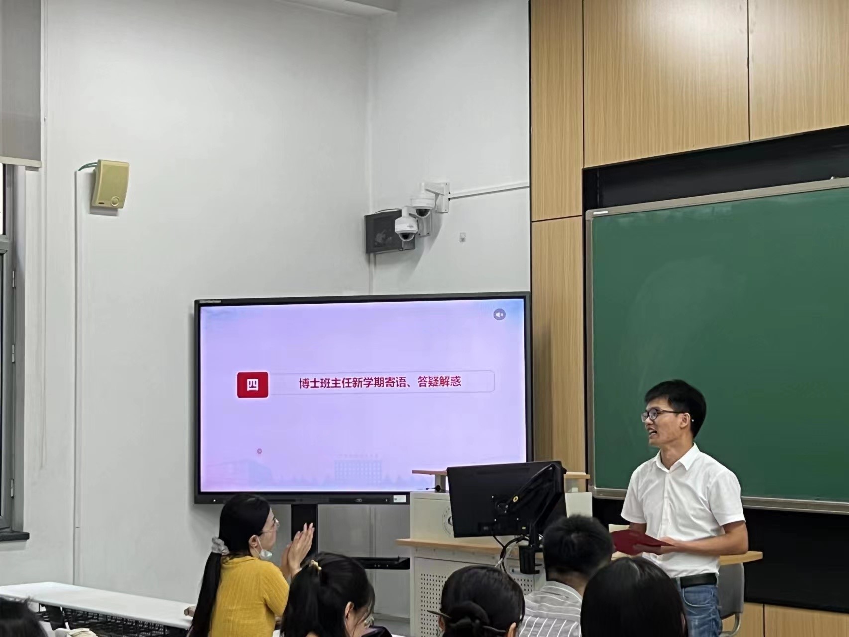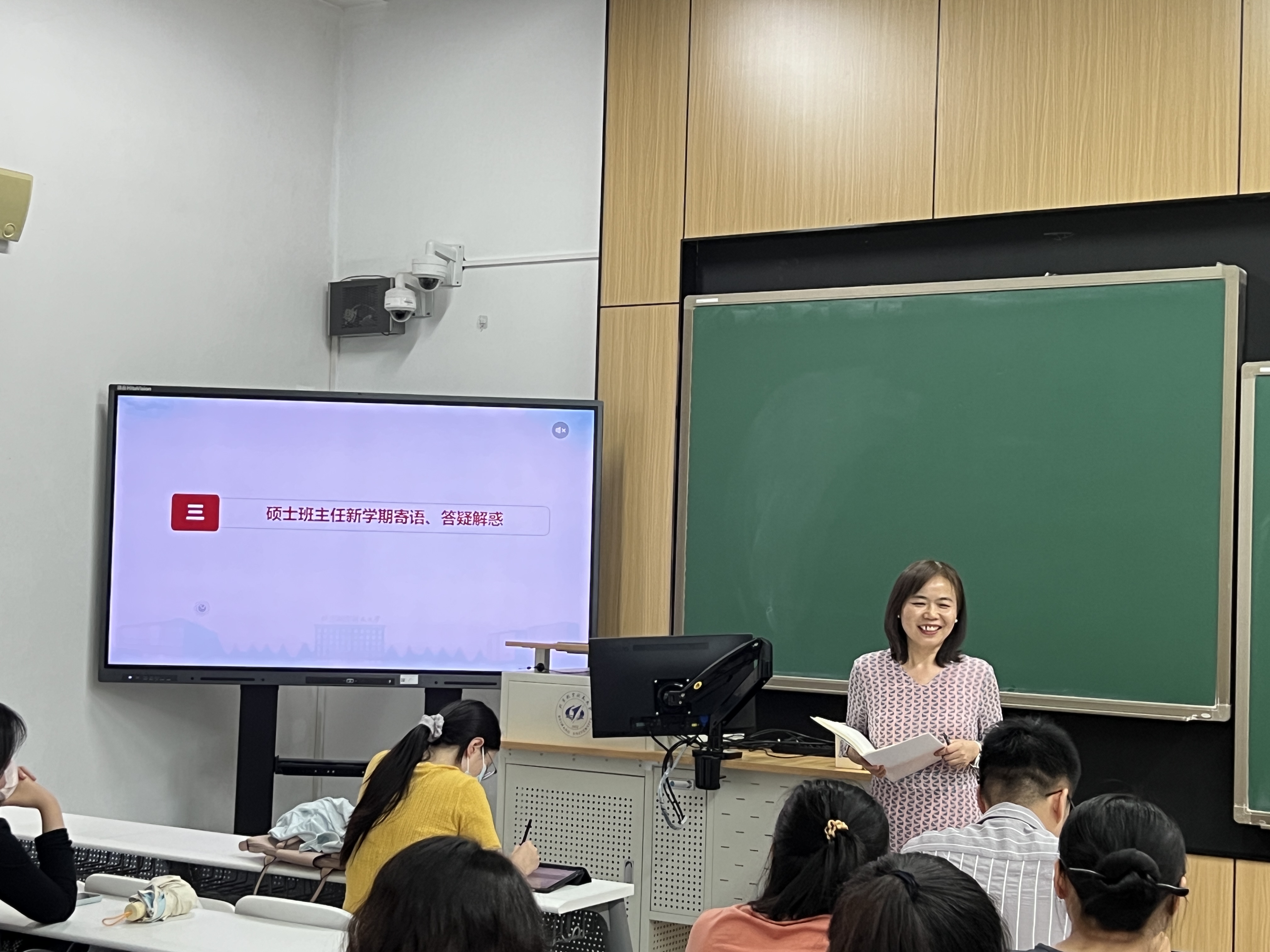 为以崭新的面貌迎接新学期,2022级硕博研究生于9月5日在新主楼B104召开了以“新征程 新航向 新未来”为主题的班会。辅导员杜玥老师,硕士生班主任徐冶琼老师,博士生班主任巩永丹老师共同参与,会议由杜玥老师主持。