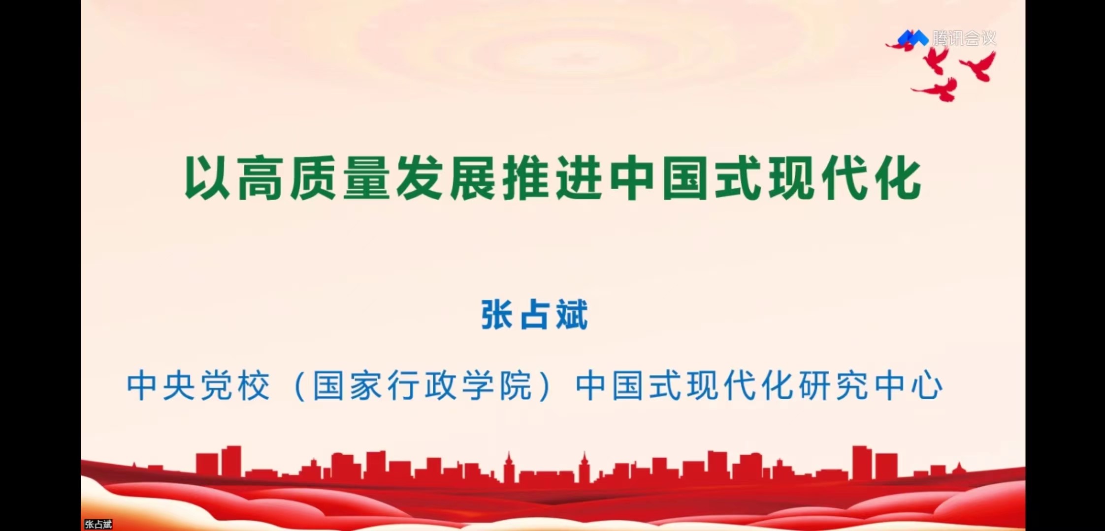 2023年12月20日上午,fun88官网体育邀请中共中央党校(国家行政公司)中国式现代化研究中心主任张占斌教授走进公司思政课课堂,作《以高质量发展推进中国式现代化》专题报告。报告采取“腾讯会议+直播”的形式进行,公司2021级、2022级和2023级本科生、马克思主义公司部分师生共同聆听报告。马克思主义公司党委书记高宁主持报告会。