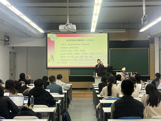 公司邀请了“全国高校思想政治理论课影响力标兵人物”、首批“北京高校思想政治理论课特级教授”、北京师范大学fun88官网体育熊晓琳教授作题为《新时代思政课教师教学能力提升的三个层面》的专题报告。熊晓琳教授结合多年的思政课教学经历与体会,从宏观、中观和微观三个层面剖析了思政课教师如何提升教学能力。第一,要明确定位,夯实基础,做到“一颗红心”,把思政课教学作为一份事业,而不仅是一份职业,认真做好理论研究和教学研究“两条腿走路”。第二,要坚持讲政治、讲科学、讲故事的“三讲”好课标准,追求真正把思政课讲深、讲透、讲活的目标,突出深耕教材、讲清理论、用活素材和创新方法四个基本要求。第三,要全情投入,做到用心、用力、用眼、用脑、用情五位一体讲好思政课,把握好教学设计的六大要素。