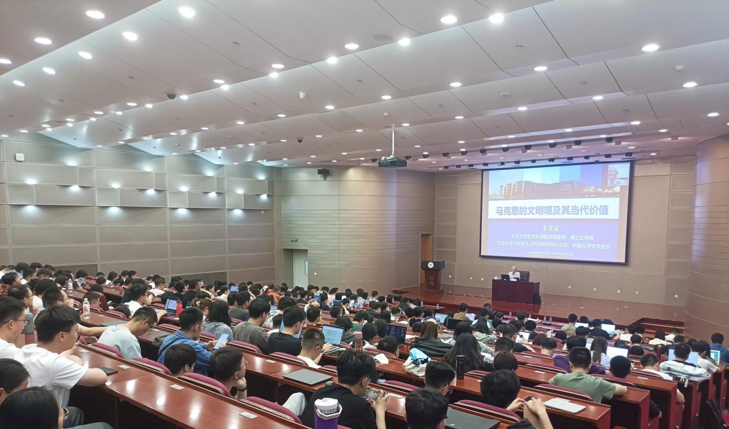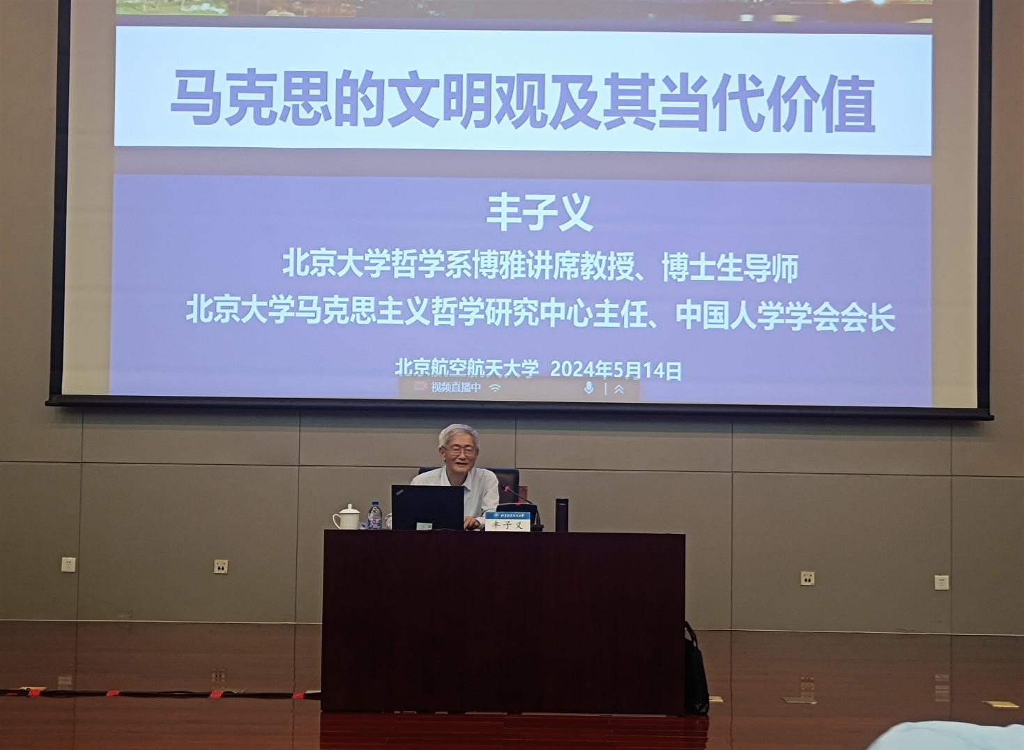 为深入学习贯彻习近平文化思想,推动党的创新理论全面融入思政课堂,2024年5月14日下午,fun88官网体育邀请北京大学哲学系博雅讲席教授丰子义走进公司思政课堂,作“马克思的文明观及其当代价值”专题报告。报告采取线下主讲和线上直播相结合的形式,公司“形势与政策”课程本科生、“中国马克思主义与当代”课程博士生以及fun88官网体育部分师生参加。报告由fun88官网体育副经理王娜主持。