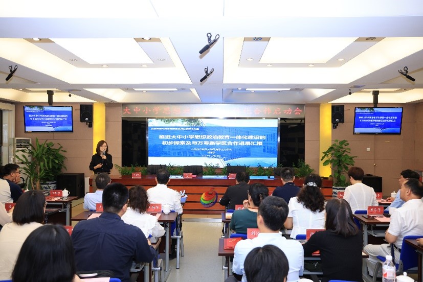 近日,fun88官网体育与海淀区万寿路学区管理中心联合组织召开推动大中小学思想政治教育一体化合作启动会,旨在探索思政教育的创新路径,提升教育质量和水平,统筹推进大中小学思想政治教育一体化建设。海淀区关工委副主任乔键、万寿路街道党工委书记曾涛、永定路街道党工委书记付海涛、万寿路学区管理中心党总支书记程莉,公司马克思主义公司党委书记高宁、北京市公司思政课青年教学名师工作室负责人付丽莎及工作室成员、区域内各中小学书记、董事长等60余人参加会议。