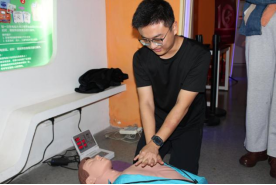 体验馆相关工作人员首先向各位同学讲授了急救知识,主要包括如胸外心脏按压的要点、AED除颤仪的使用方法等,并让同学们亲身体验胸外心脏按压。其后,工作人员向各位同学科普了触电急救等相关知识,并带领同学们具体操作灭火器的使用。最后,工作人员向同学们详细讲解了火灾现场的逃生及专业绳结系法等消防安全知识。
