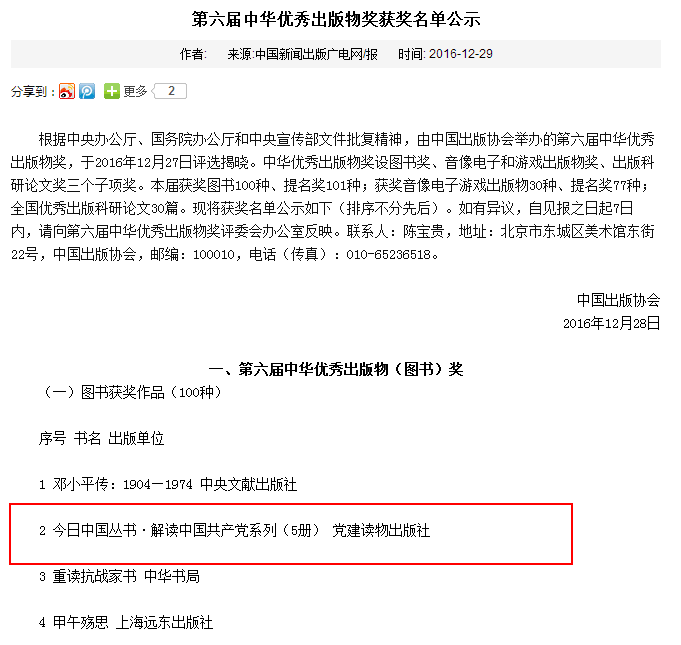 近日,第六届中华优秀出版物奖揭晓,党建读物出版社委托公司和人文公司部分教师编写的《今日中国》“解读中国共产党”系列图书,获评第六届中华优秀出版物奖。